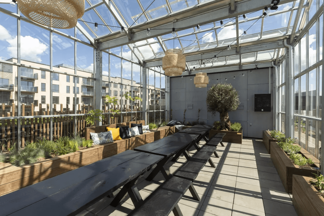 Fælledkanten offers a unique greenhouse on the rooftop terrace. Booking the greenhouse for events is free of charge. If you wish to book the greenhouse, you can do so directly through the Mit Balder app.