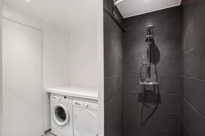 Enjoy your mornings in the bathroom with underfloor heating, wall-hung toilet and washer and dryer.