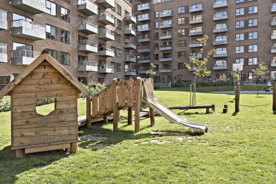Large green areas and residential buildings such as Tietgenkollegiet, Bikuben College, Boligslangen and the Park of Karen Blixen are also a part of the district.