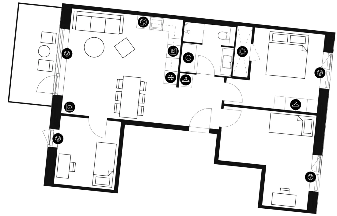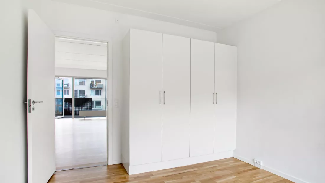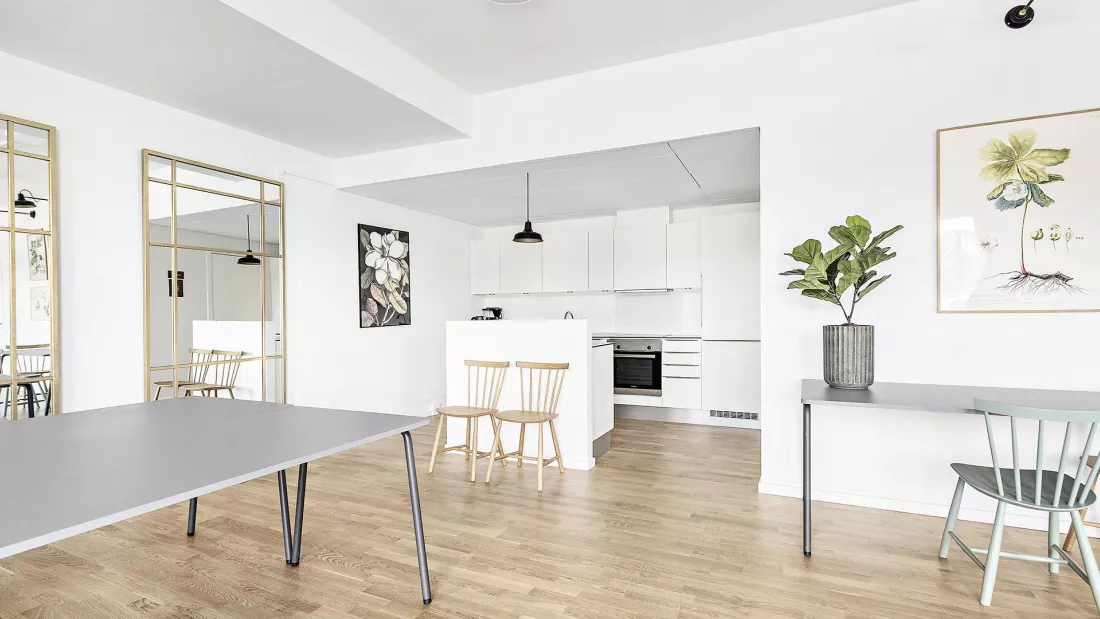 The apartment appears bright and spacious and is constructed in classic and modern materials. The center of the apartment is a large open-plan kitchen and living room, which receives a fantastic natural inflow of light from the large windows. The modern and practical kitchen from Invita features a tabletop in composite, LED-spotlights, and integrated appliances from Siemens. The bathroom features underfloor heating, a molded marble sink, a wall-hung toilet, and washing machine and dryer. You can apply for a pet permission in all our apartments. NOTE: if you want measurements of the apartment, you must bring the measuring equipment to the showing yourself, as there are no measurements on the floor plan.