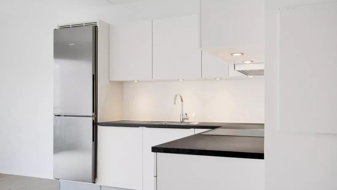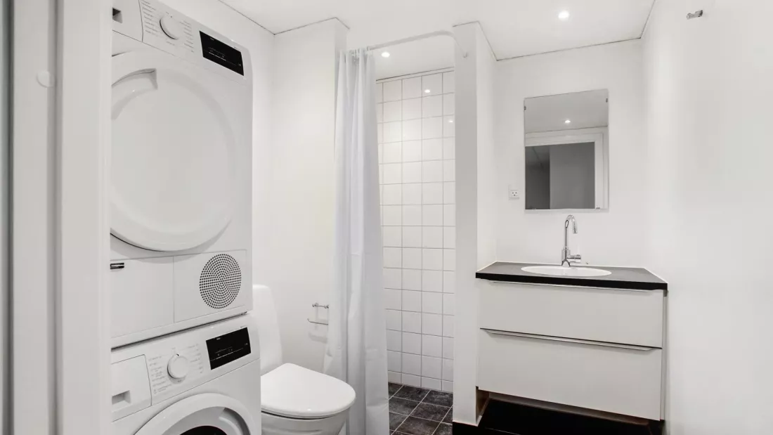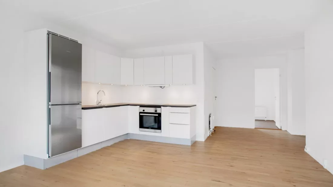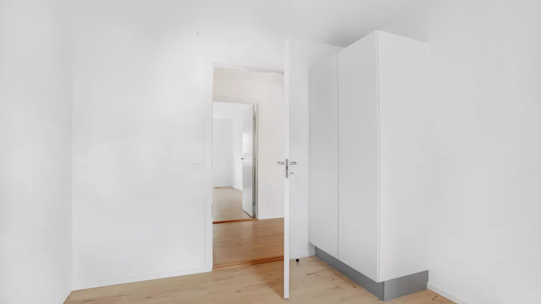 The apartment appear almost new. It has been built in bright and contemporary materials, with solid parquet floors and white-painted walls, ceilings and panels. The spacious living room forms the heart of the apartment and is right next to an open, functional kitchen with lots of cabinet space, stove, fridge and freezer, and dishwasher. In the bathroom you will have both washing machine and dryer. In the bedroom you will find closets with storage space. In addition, there is a 3-4 m2 storage room in the basement. You can apply for a pet permission in all our apartments.