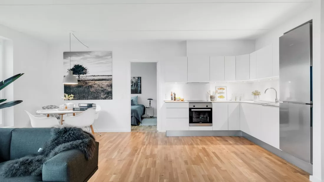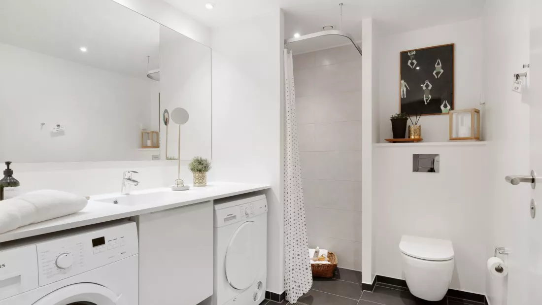 The apartment has a great inflow of light from the large windows and is characterized by quality materials everywhere such a kitchen from Invita, appliances from Siemens, and beautiful modern bathroom with underfloor heating. Materials and colors have been carefully selected and includes greyish and warm, light earth tones. You can apply for a pet permission in all our apartments. NOTE: if you want measurements of the apartment, you must bring the measuring equipment to the showing yourself, as there are no measurements on the floor plan.