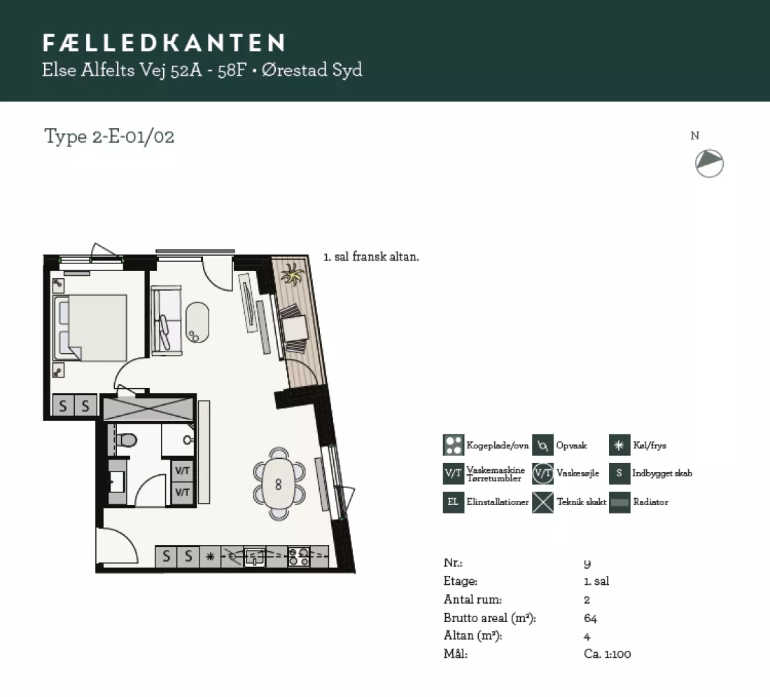 The local area is called, Ørestad South, which is Copenhagen's new green district. The area is in rapid development and is characterized by modern, experimental and award-winning architecture. Fælledkanten is located at Ager Jorns Plads at the end of Asger Jorns Allé, which will be Ørestad South’s main street. In Fælledkanten you are close to all the facilities that the area has to offer. Both childcare and school are within walking or cycling distance from here. Kalvebod Fælled School is a new primary school that specializes in sports and physical educations. The daily shopping can be purchased in the local neighborhood - and with metro you can be at the center of Copenhagen in just 14 minutes. The greatest quality of the area is probably Kalvebod Fælled, which is a protected nature reserve that is recognized as a national landmark. Here, you will find a completely unique natural landscape with a beautiful fauna and a rich natural life. Ørestad South is one of the few places in Europe, where you can live in a capital and at the same time live in the middle of nature.