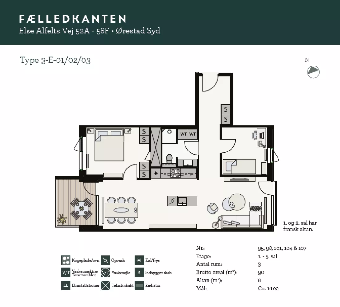 The local area is called, Ørestad South, which is Copenhagen's new green district. The area is in rapid development and is characterized by modern, experimental and award-winning architecture. Fælledkanten is located at Ager Jorns Plads at the end of Asger Jorns Allé, which will be Ørestad South’s main street. In Fælledkanten you are close to all the facilities that the area has to offer. Both childcare and school are within walking or cycling distance from here. Kalvebod Fælled School is a new primary school that specializes in sports and physical educations. The daily shopping can be purchased in the local neighborhood - and with metro you can be at the center of Copenhagen in just 14 minutes. The greatest quality of the area is probably Kalvebod Fælled, which is a protected nature reserve that is recognized as a national landmark. Here, you will find a completely unique natural landscape with a beautiful fauna and a rich natural life. Ørestad South is one of the few places in Europe, where you can live in a capital and at the same time live in the middle of nature.