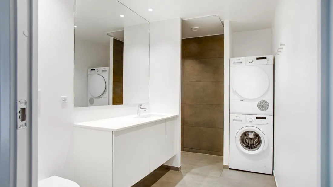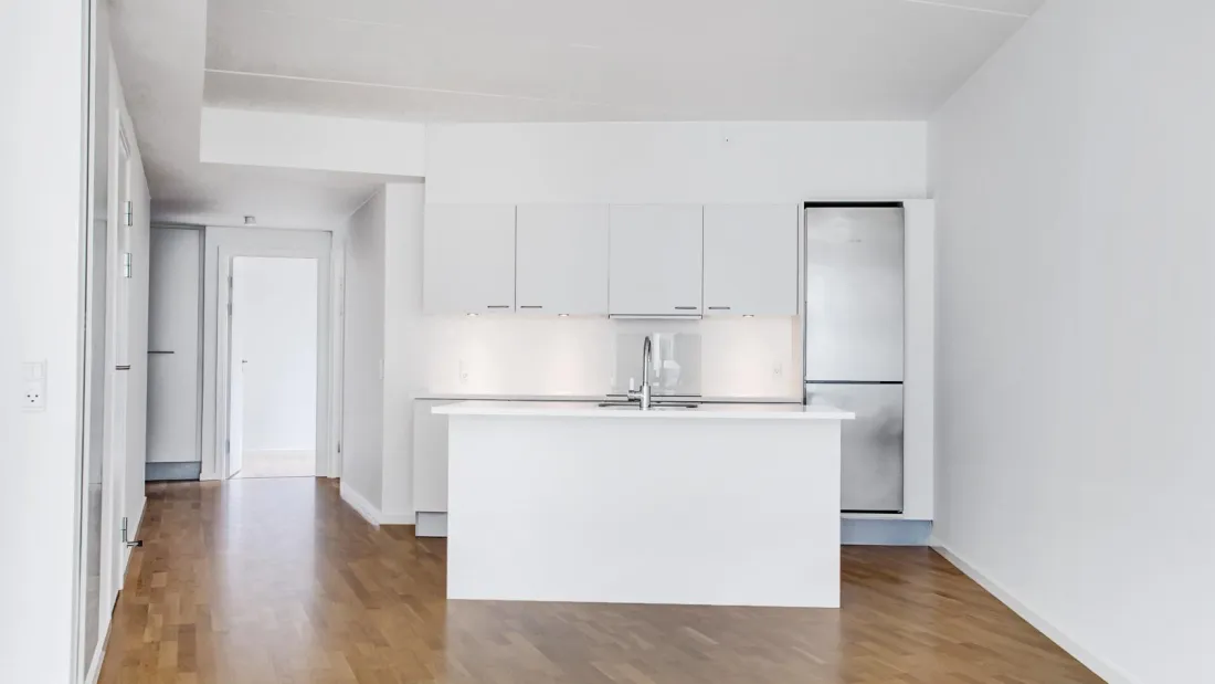 The apartment has large windows and are angled for optimal inflow of daylight and view of the water. The light kitchen is from Invita and has plenty of cabinet space as well as built-in appliances from Siemens. The living room and kitchen are combined in one open room and provides the perfect settings for both dining and relaxing. The bathroom has large tiles on the floor and in the shower cabinet. It also comes with underfloor heating as well as washing machine and dryer. In the bedroom and the hallway, there are built-in closets. The floors are oak parquet floors from Junckers. You can apply for a pet permission in all our apartments. NOTE: if you want measurements of the apartment, you must bring the measuring equipment to the showing yourself, as there are no measurements on the floor plan.