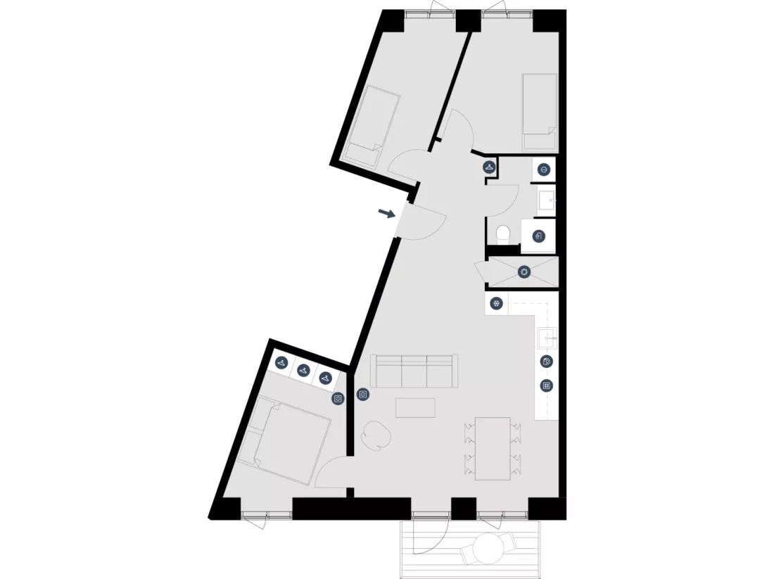Exciting 3-bedroom apartment, where you are welcomed into the apartment through a small entrance hall with room for outerwear. The apartment has a bedroom with closet space and 2 small rooms. The bathroom is in a timeless, minimalist design with a tiled floor and shower stall, underfloor heating, and a stackable washer and dryer. The rest of the flat features beautiful oak wood flooring and underfloor heating. The apartment has a large, open kitchen-dining area with a modern white Invita kitchen, including all necessary domestic appliances. There is room for a combined dining and living room arrangement, which gives access to 2 balconies where you can enjoy your coffee. The idea behind the apartments is Simple Living, which is all about giving you the peace and quiet to focus on the few but important things in life. It's about living with as few things as possible and owning only what you need for your daily life. This is exactly what we can offer you in our efficient and well-designed apartments. It's about living with as few things as possible and owning only what you need for your daily life. It is possible to apply for a pet permit in any rental unit, which must be approved by the landlord.