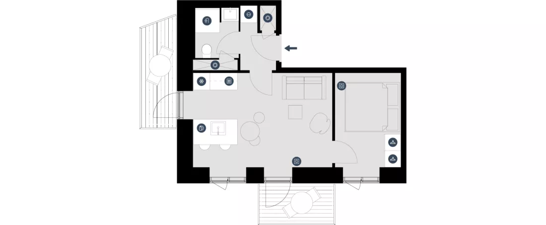 The idea behind the apartments is Simple Living, which is all about giving you the peace and quiet to focus on the few but important things in life. It's about living with as few things as possible and owning only what you need for your daily life. This is exactly what we can offer you in our efficient and well-designed apartments. It's about living with as few things as possible and owning only what you need for your daily life.