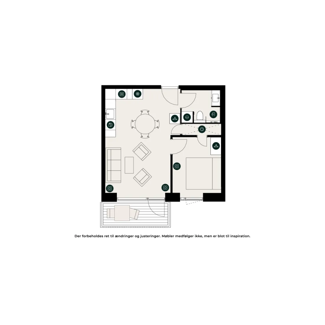Well-designed 2-room apartment. Nice large living room with direct access to a south-facing balcony. Connected to the living room is a modern white Invita kitchen with energy-friendly white goods from Siemens and an induction hob. Bedroom with fitted closets. A lovely bathroom with underfloor heating and both tiles and cabinets are neutral colours. Moulded sink with a mixer tap from Adora. Villeroy & Boch toilet and stacked washer/dryer. Beautiful slatted parquet floors in Natural Oak with matt varnish. Lots of light throughout the apartment through large, beautiful windows. It is possible to apply for a pet permit in all our apartments. If you move into this fantastic apartment and you can go for a run in the woods or enjoy Elsinore's many cultural attractions. NOTE: if you want to have measurements of the apartment, you must bring your own measuring equipment to the showing, as there are no measurements on the floor plan.