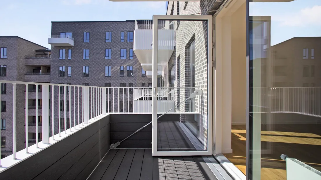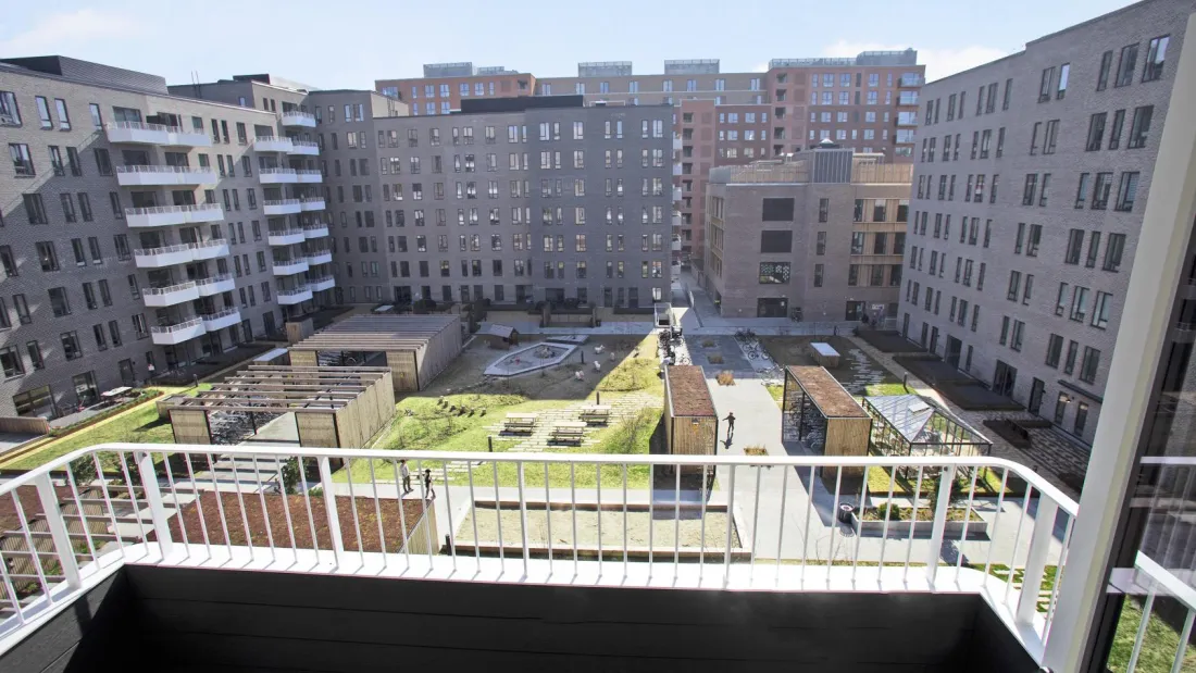 Bastionen is a fascinating estate with a strong architectural identity designed by the award-winning architects Danielsen Architecture. Here, you are welcomed by the characteristic “winter gardens” which decorate the façade of the property and leads into the green inner courtyard. The unique vegetation from the surrounding Kalvebod Fælled has been drawn into the courtyard and the balconies, which helps to mitigate the wind and create a green oasis. The southwest corner of Bastionen has been built significantly lower than the other corners of the property to draw sun into the inner courtyard and provide the best view possible of the surrounding nature in Skovrummet and Fælleden. The lowered corner in the southwest part of the building also means that the apartments get a great inflow of daylight. The green and diversified vegetation of the inner courtyard creates relaxing cozy corners and perfect natural surroundings for child’s play with tall climbing trees, small hills and meadow grass where you can play hide and seek. The inner courtyard also features a greenhouse, a basketball court and a sheltered area for bicycle parking. The property also features elevators, door phones with cameras and the possibility of underground parking.