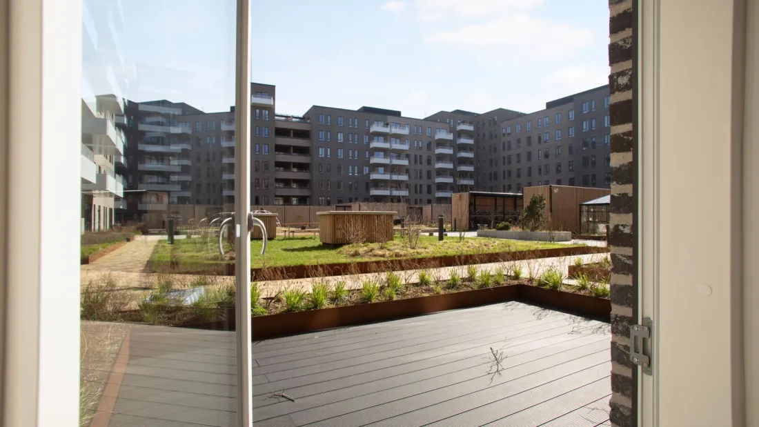 Bastionen is a fascinating estate with a strong architectural identity designed by the award-winning architects Danielsen Architecture. Here, you are welcomed by the characteristic “winter gardens” which decorate the façade of the property and leads into the green inner courtyard. The unique vegetation from the surrounding Kalvebod Fælled has been drawn into the courtyard and the balconies, which helps to mitigate the wind and create a green oasis. The southwest corner of Bastionen has been built significantly lower than the other corners of the property to draw sun into the inner courtyard and provide the best view possible of the surrounding nature in Skovrummet and Fælleden. The lowered corner in the southwest part of the building also means that the apartments get a great inflow of daylight. The green and diversified vegetation of the inner courtyard creates relaxing cozy corners and perfect natural surroundings for child’s play with tall climbing trees, small hills and meadow grass where you can play hide and seek. The inner courtyard also features a greenhouse, a basketball court and a sheltered area for bicycle parking. The property also features elevators, door phones with cameras and the possibility of underground parking.