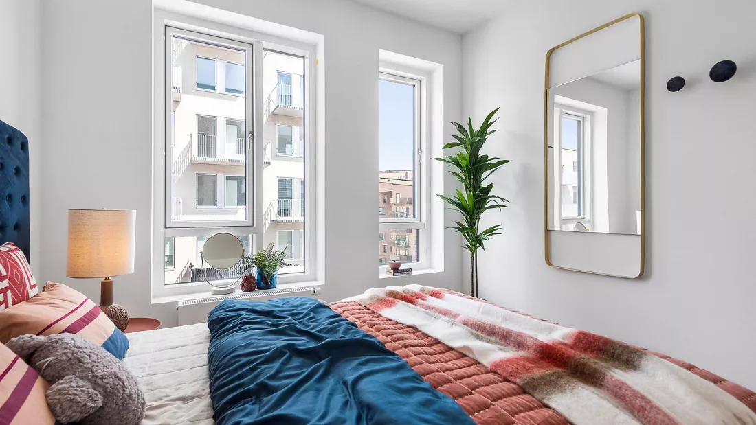 NB: the pictures do not show the exact apartment, but instead are pictures of an apartment with the somewhat same floor plan and in the same condition. There may be variations in window, balcony and radiator placements between apartments of the same type. In addition, the view from windows or balcony may vary if the image is taken from a floor slightly higher up or further down than the apartment in question. Therefore, we always require you to participate in a showing of the apartment before you can sign a lease agreement, so you are sure of what you get. Contact our rental team if you are interested in the property, or book a viewing directly here on the website.