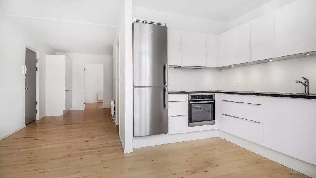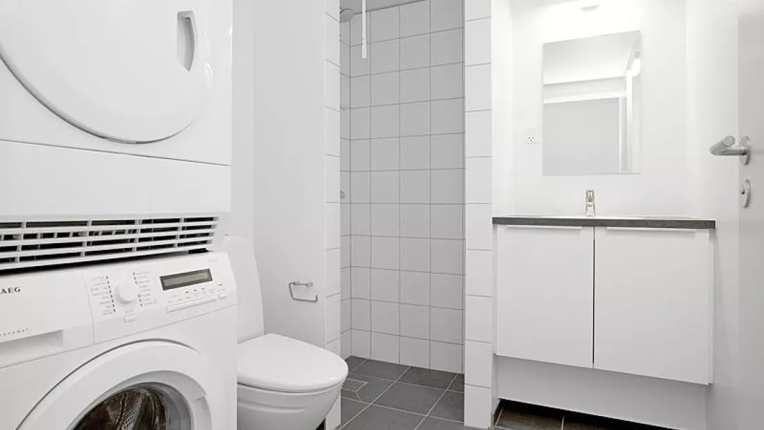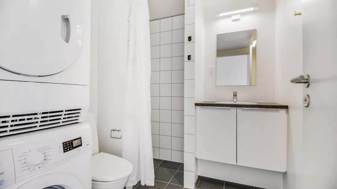 The apartment appear almost new. It has been built in bright and contemporary materials, with solid parquet floors and white-painted walls, ceilings and panels. The spacious living room forms the heart of the apartment and is right next to an open, functional kitchen with lots of cabinet space, stove, fridge and freezer, and dishwasher. In the bathroom you will have both washing machine and dryer. In the bedroom you will find closets with storage space. In addition, there is a 3-4 m2 storage room in the basement. You can apply for a pet permission in all our apartments.