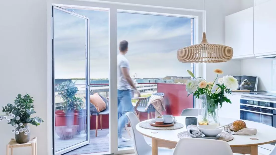 Award-winning architects Mangor & Nagel have drawn the lines for Rubinhaven, which features many architectural details. Variations in joint colour, slightly recessed balconies, and a few round windows create both life and harmony in the facade, while the characteristic play of colours between the yellow-brown bricks and the red balconies and window frames make the property stand out in the landscape.