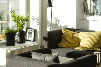 Large living room and balcony with a view overlooking the water