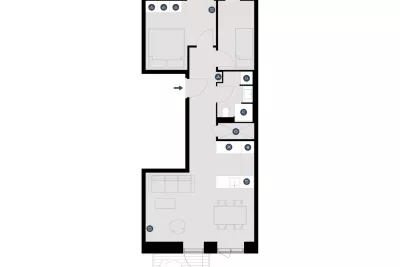 In Strandby Høje, the kitchen-family room is the natural centre of the apartment with space for everyday life. The open-plan family room and large floor-to-ceiling windows provide light and air to play with a multifunctional interior design. There's room for cooking, couch time, and homework. From the kitchen-family room there is also direct access to the balcony, in some apartments there are actually two, with room for both barbecues and herb gardens. The kitchen-family room is painted in light Nordic shades with oak flooring and white kitchen units with integrated appliances.