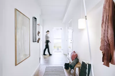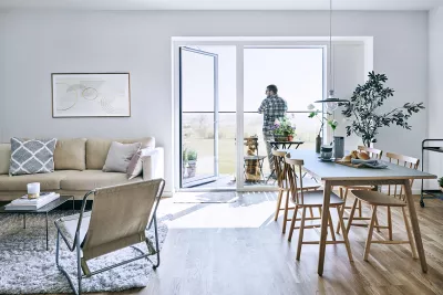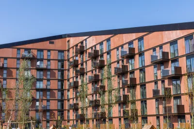 The facades have a modern and open look featuring red-brown hues inspired by terracotta-coloured mountains and stucco houses often seen in southern Europe. The balcony system is also beautiful and functional with glass screens that both serve as noise barriers and enhance the inviting aesthetic. Wooden clad planter boxes and screening wooden slats give the facade a green hue letting light shine through while creating a sense of privacy in the flats' integrated outdoor spaces.