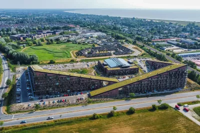 The two hills are covered with a specially selected evergreen sedum grass, which both draws nature upwards and completes the architectural expression while contributing to both climate-safe rainwater management and local biodiversity.
