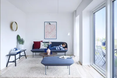 You'll have your own private outdoor space, in the form of either a balcony or terrace, from which you can enjoy the changing seasons and beautiful views. The buildings' staggered floors and gently sloping site give you optimal views - and on a clear day, the view from the top apartments stretches all the way to Sweden.