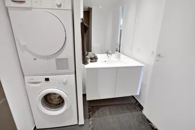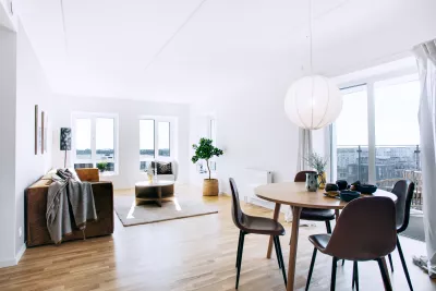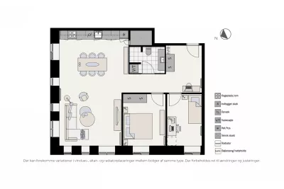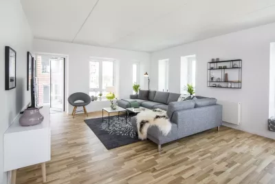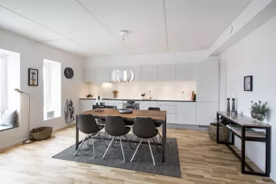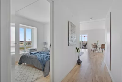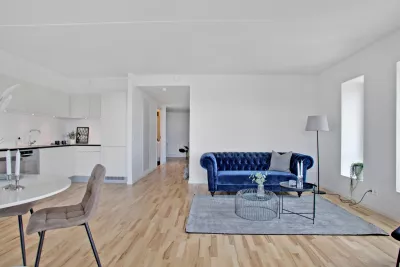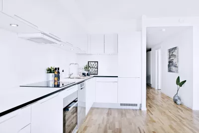 I Fælledudsigten flytter du ind i en lys og moderne lejlighed med åbent køkken og dagligstue i samme centrale rum. Det hvide og stilrene køkken fra Invita indeholder hårde hvidevarer fra Bosch. Her kan du slippe madtalentet løs, og takket være den rummelige dagligstue er der plads til, at du kan du invitere familien eller vennerne over til middag.