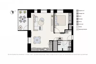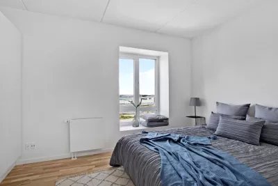 Du får også rummelige værelser, badeværelse med vaskesøjle, og mange af lejlighederne har egen overdækket altan, hvorfra du har den flotteste udsigt.