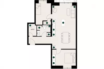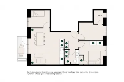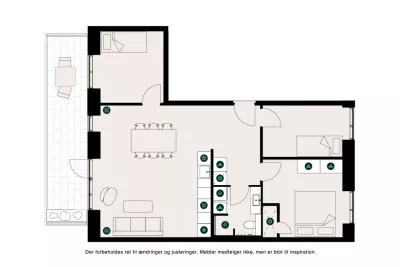Lejlighederne er indrettet med store alrum, der åbner sig op mod lyset fra vinduespartierne og har udgang til altanen. Her er plads til livets store og små begivenheder, det kan være rolige familiemorgener eller den store fødselsdagsfest.