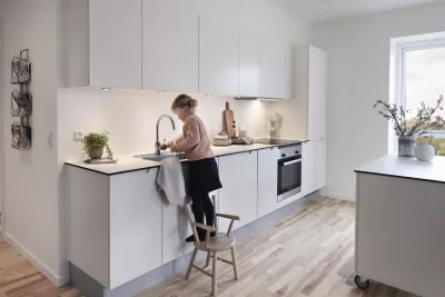 Vores lejligheder er både funktionelle og praktiske. Vi har sørget for, at vores familievenlige lejeboliger i Hillerød har masser af opbevaringsplads, gode køkkenfaciliteter og er placeret tæt på skoler, indkøbsmuligheder og fritidsaktiviteter. Vi har tænkt på alt det, der kan gøre hverdagen en smule lettere og mere bekvem.