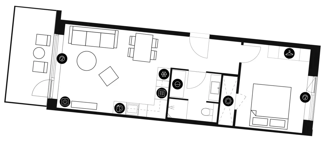 Lejligheden fremstår lys og rummelig og er opført i klassiske og tidssvarende materialer. Stue og køkken ligger i forlængelse af hinanden og skaber et stort åbent rum der giver maksimalt udbytte af det fantastiske lysindfald. Det moderne og praktiske køkken er fra Invita og byder blandt andet på ’svævende’ bordplade med højtrykskomposit, LED-spots og integrerede hvidevarer – alle fra Siemens. Fra gangen har du adgang til det indbydende badeværelse med gulvvarme, formstøbt og integreret marmorvask, væghængt toilet samt vaskemaskine og tørretumbler. Det er muligt at ansøge om husdyrtilladelse i alle vores lejemål. OBS: ønskes der mål af lejligheden skal du selv huske opmålings udstyr til fremvisning, da der ikke er mål på plantegningen.