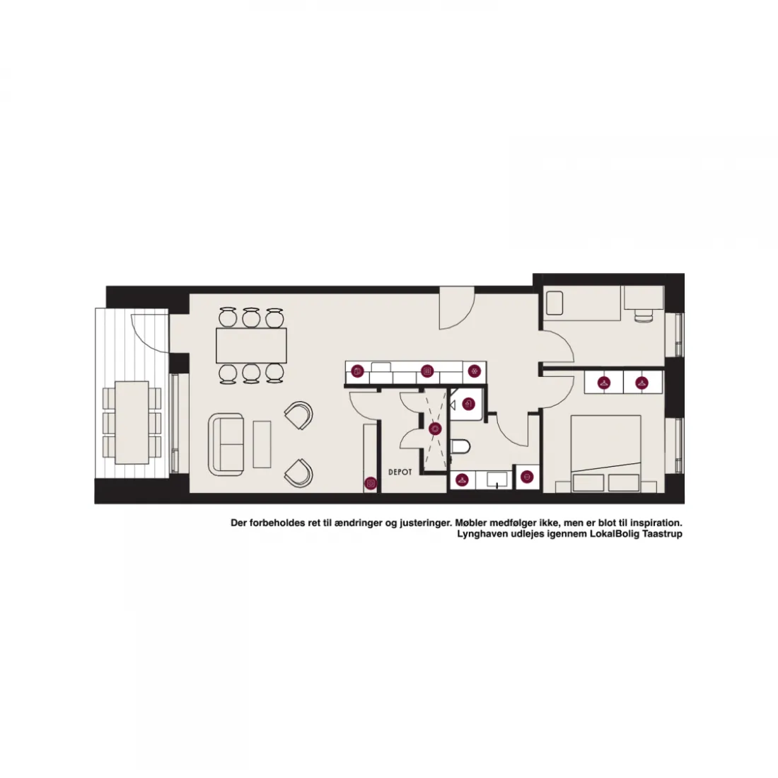 NB: Billederne viser derfor ikke den pågældende lejlighed, men i stedet billeder fra prøveboligen. Billedernes formål er at give en fornemmelse af stil og materialevalg. Ift. planløsning henviser vi til plantegningen. Kontakt vores udlejningsteam, hvis boligen har interesse, eller book en fremvisning direkte her på lejemålet.