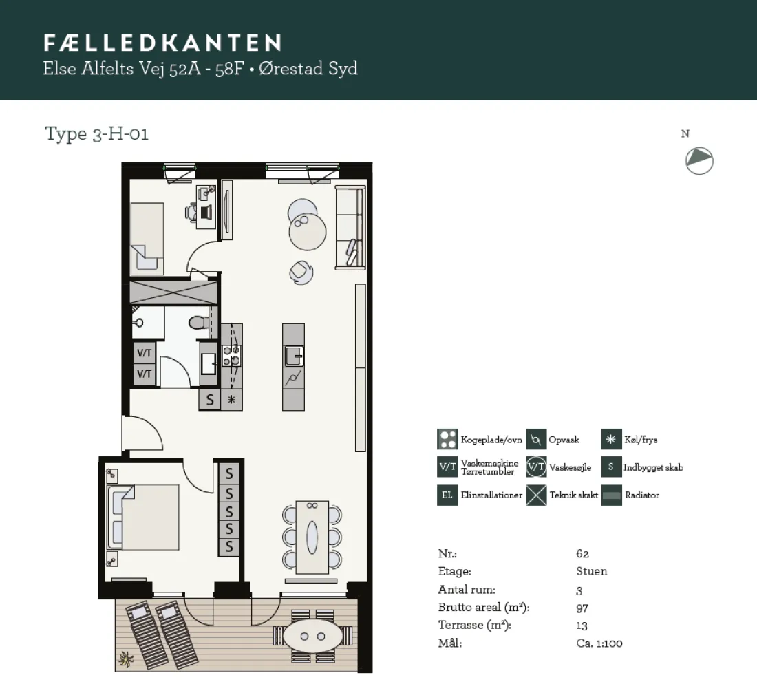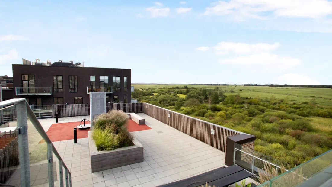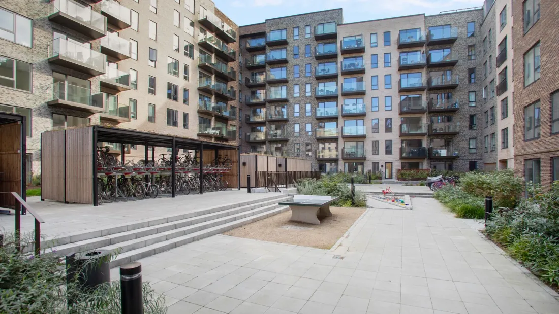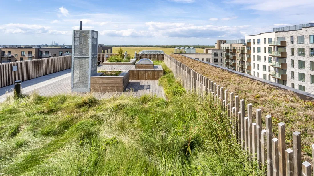 Fælledkanten er karakteriseret ved sin unikke beliggenhed i første række ud mod Kalvebod Fælled samt for den 1.300m2 store fælles tagterrasse. Her er indrettet tre store væksthuse med frugttræer, siddeophold og urbant fællesgartneri. Taghaven er etableret i fire niveauer med elevator til alle niveauer. Ejendommen er opført i 2019 og tegnet af de prisvindende Danielsen Architecture. Intet er overladt til tilfældighederne, så her får du de perfekte rammer om et moderne familieliv med energibesparende løsninger i funktionelt og tidløst design. Gården består af små oaser med legeområder, der indbyder til både afslapning og leg. Parkeringskælder er etableret under ejendommen med mulighed for leje af privat p-plads. Til ejendommen hører også cykelparkering, depotrum, dørtelefon med kameraovervågning og elevator.