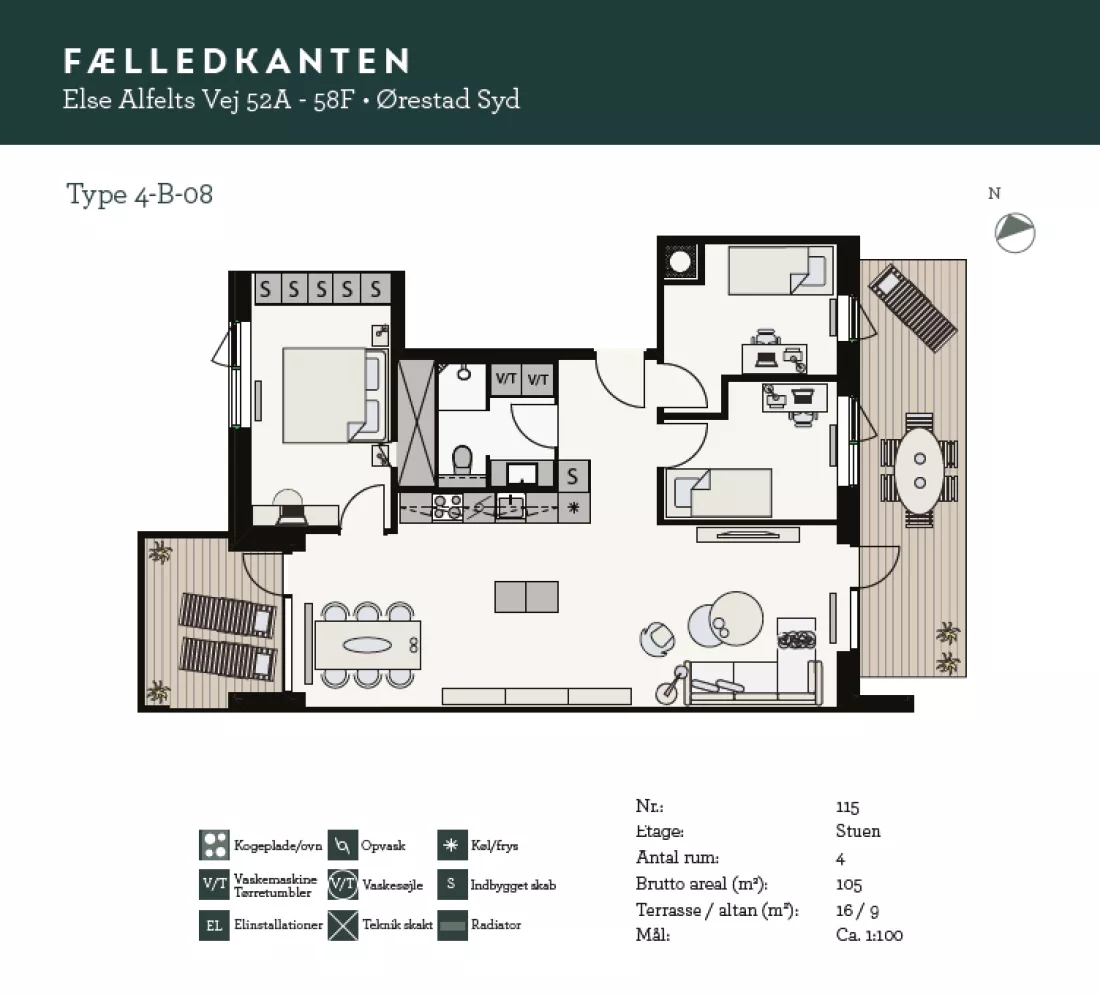 Fælledkanten er karakteriseret ved sin unikke beliggenhed i første række ud mod Kalvebod Fælled samt for den 1.300m2 store fælles tagterrasse. Her er indrettet tre store væksthuse med frugttræer, siddeophold og urbant fællesgartneri. Taghaven er etableret i fire niveauer med elevator til alle niveauer. Ejendommen er opført i 2019 og tegnet af de prisvindende Danielsen Architecture. Intet er overladt til tilfældighederne, så her får du de perfekte rammer om et moderne familieliv med energibesparende løsninger i funktionelt og tidløst design. Gården består af små oaser med legeområder, der indbyder til både afslapning og leg. Parkeringskælder er etableret under ejendommen med mulighed for leje af privat p-plads. Til ejendommen hører også cykelparkering, depotrum, dørtelefon med kameraovervågning og elevator.