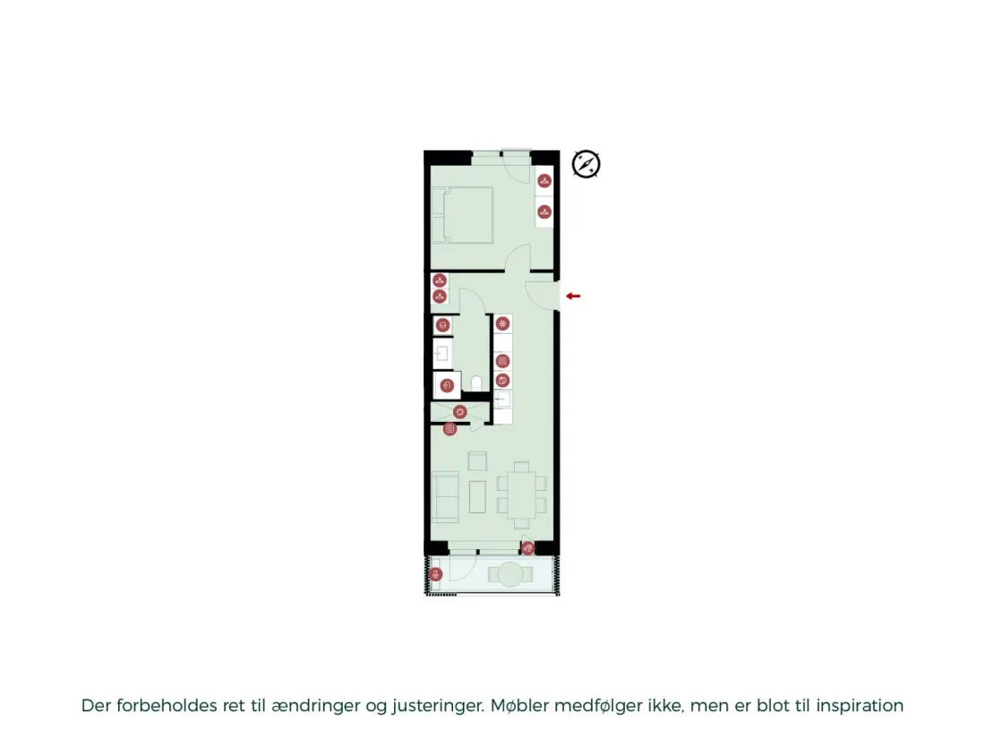 NB: Billederne viser derfor ikke den pågældende lejlighed, men i stedet billeder fra prøveboligen. Billedernes formål er at give en fornemmelse af stil og materialevalg. Ift. planløsning henviser vi til plantegningen. Kontakt vores udlejningsteam, hvis boligen har interesse, eller book en fremvisning direkte her på lejemålet.