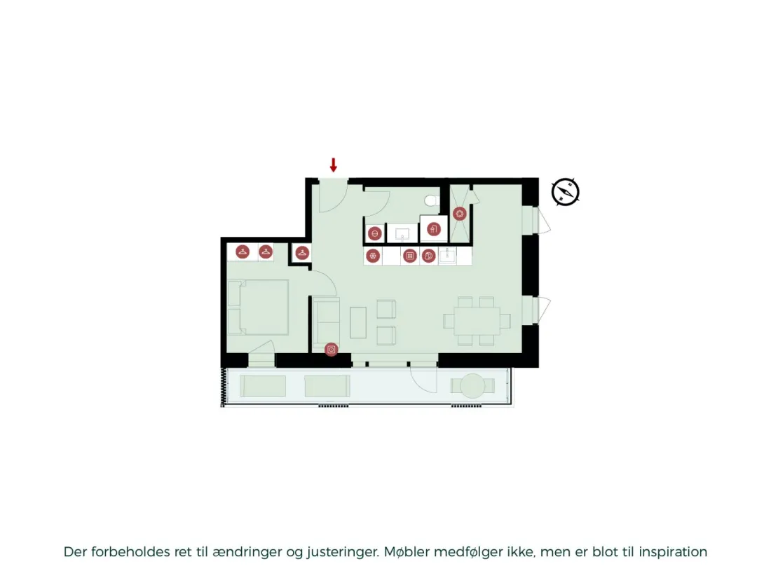 NB: Billederne viser derfor ikke den pågældende lejlighed, men i stedet billeder fra prøveboligen. Billedernes formål er at give en fornemmelse af stil og materialevalg. Ift. planløsning henviser vi til plantegningen. Kontakt vores udlejningsteam, hvis boligen har interesse, eller book en fremvisning direkte her på lejemålet.