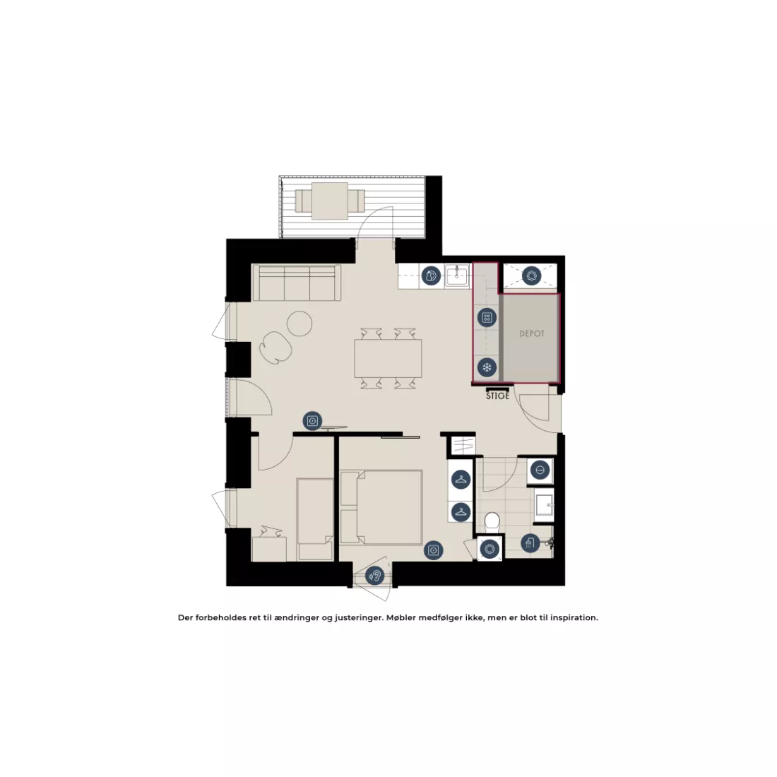 NB: Billederne viser derfor ikke den pågældende lejlighed, men i stedet billeder fra prøveboligen. Billedernes formål er at give en fornemmelse af stil og materialevalg. Ift. planløsning henviser vi til plantegningen. Kontakt vores udlejningsteam, hvis boligen har interesse, eller book en fremvisning direkte her på lejemålet.