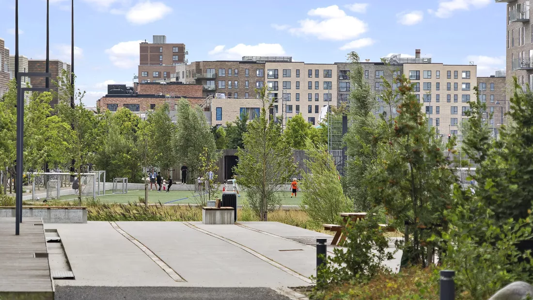 Fælledudsigten ligger tæt på både kulturelle oplevelser i Royal Arena, shopping i Field’s, skøjtehal og Kalvebod Fælleds storslåede natur. Området omkring Arenakvarteret formidler overgangen fra by til natur, hvor det urbane møder det store fredede naturområde. Her er både plads til leg og løbeture. Ejendommen ligger desuden blot et stenkast fra Kalvebod Fælled Skole, som er en nybygget folkeskole med profil i idræt og bevægelse. Til den modsatte side ligger Ørestad Gymnasium, et moderne gymnasium med fokus på digital undervisning og mediefag. Begge skoler kan nås ved blot 5 minutters cykeltur. Og skal man ind til centrum, så går metroen næsten fra din hoveddør og bringer dig til Kgs. Nytorv på bare 14 min.