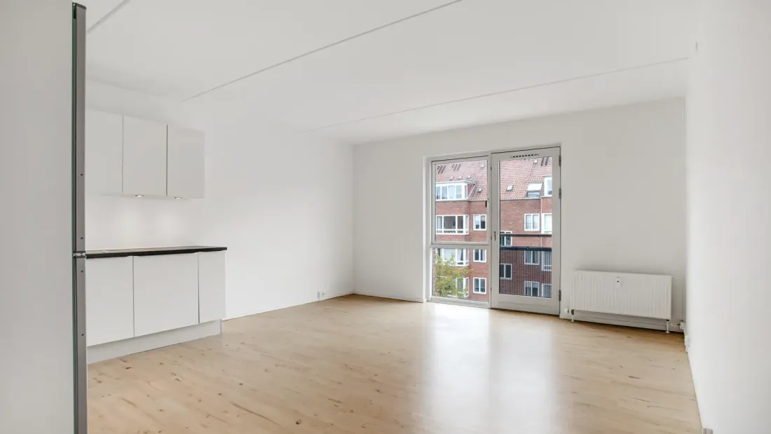 NB: billederne viser ikke den eksakte lejlighed, men er i stedet billeder fra en lejlighed med samme planløsning og i samme stand. Der kan forekomme mindre variationer i vindues-, altan- og radiatorplaceringer mellem boliger af samme type. Desuden kan udsigten variere, hvis typebilledet er taget fra en etage lidt højere oppe eller længere nede end den pågældende lejlighed. Derfor kræver vi altid, at du skal med ud på en fremvisning inden du kan underskrive en lejekontrakt, så du er helt sikker på, hvad du får. Kontakt vores udlejningsteam, hvis boligen har interesse, eller book en fremvisning direkte her på lejemålet.