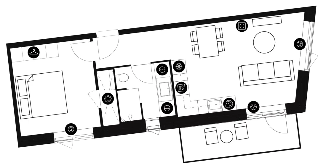 Lejligheden fremstår lys og rummelig og er opført i klassiske og tidssvarende materialer. Stue og køkken ligger i forlængelse af hinanden og skaber et stort åbent rum der giver maksimalt udbytte af det fantastiske lysindfald. Det moderne og praktiske køkken er fra Invita og byder blandt andet på ’svævende’ bordplade med højtrykskomposit, LED-spots og integrerede hvidevarer – alle fra Siemens. Fra gangen har du adgang til det indbydende badeværelse med gulvvarme, formstøbt og integreret marmorvask, væghængt toilet samt vaskemaskine og tørretumbler. Det er muligt at ansøge om husdyrtilladelse i alle vores lejemål. OBS: ønskes der mål af lejligheden skal du selv huske opmålings udstyr til fremvisning, da der ikke er mål på plantegningen.