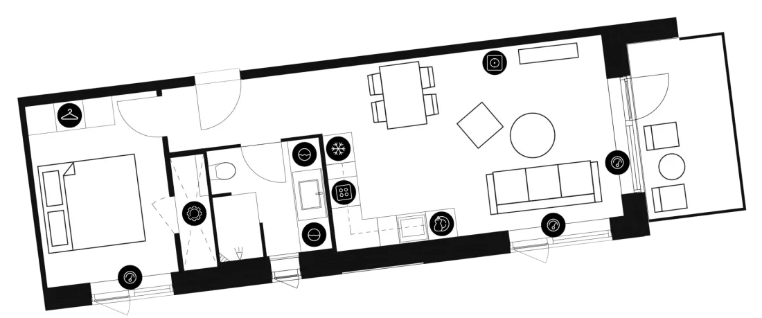 Lejligheden fremstår lys og rummelig og er opført i klassiske og tidssvarende materialer. Stue og køkken ligger i forlængelse af hinanden og skaber et stort åbent rum der giver maksimalt udbytte af det fantastiske lysindfald. Det moderne og praktiske køkken er fra Invita og byder blandt andet på ’svævende’ bordplade med højtrykskomposit, LED-spots og integrerede hvidevarer – alle fra Siemens. Fra gangen har du adgang til det indbydende badeværelse med gulvvarme, formstøbt og integreret marmorvask, væghængt toilet samt vaskemaskine og tørretumbler. Det er muligt at ansøge om husdyrtilladelse i alle vores lejemål. OBS: ønskes der mål af lejligheden skal du selv huske opmålings udstyr til fremvisning, da der ikke er mål på plantegningen.