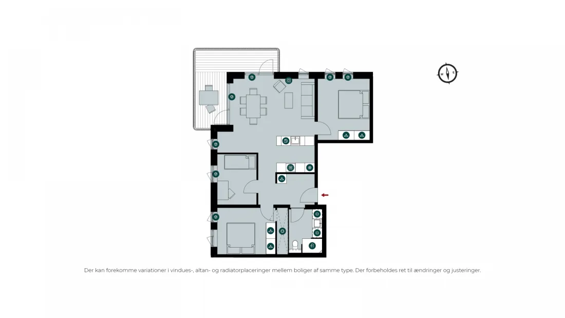 Stor og lys 4-værelses lejlighed med hjørnealtan