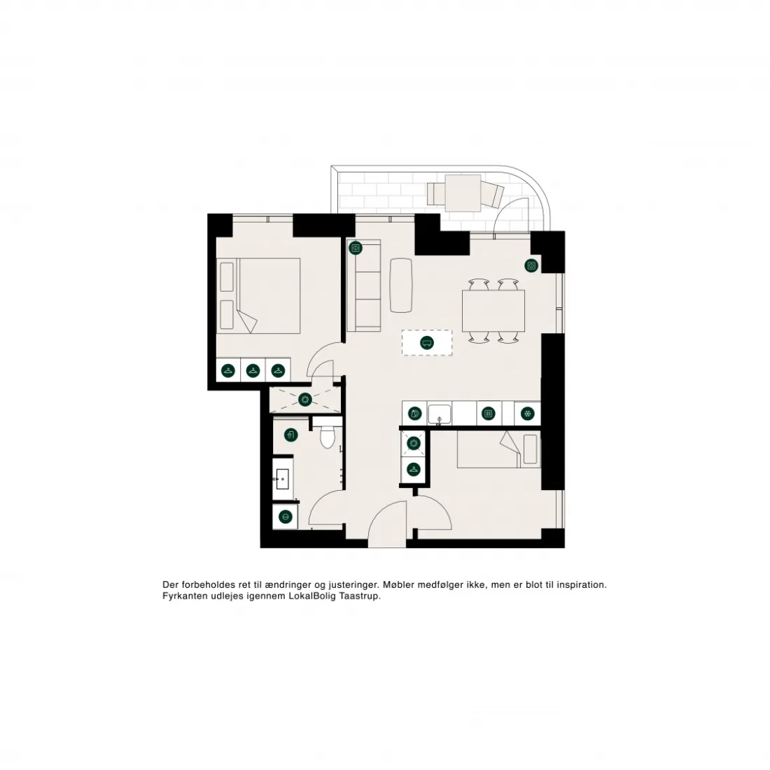 Indenfor kort afstand finder du gode skoler, institutioner og arbejdspladser. Der er rig mulighed for indkøb og underholdning i det nærliggende City2, og du er heller ikke langt fra Taastrups handelsliv. Sidst men ikke mindst ligger Fyrkanten i gåafstand til stationen, hvorfra der er forbindelse til både København og resten af landet.