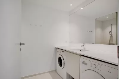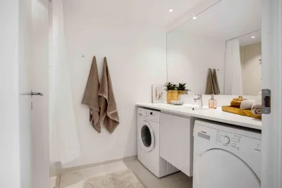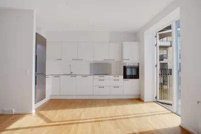 Ejendommen blev opført i 2018 og alle lejligheder fremstår derfor stadig nye og lækre. De er opført i skandinavisk stil med lyse materialer og minimalistisk design. De store vinduer lukker masser af dagslys ind og skaber derved en varm atmosfære og et flot spil på det lyse egetræsgulv. Alle boligerne har et centralt opholdsrum med åbent køkken og spiseplads. Det diskrete, hvide køkken er fra Invita med hårde hvidevarer fra Siemens. På badeværelset er der fliser på gulvet og i brusekabinen samt en vaskesøjle med både vaskemaskine og tørretumbler fra Siemens. Boligerne er desuden bygget med omtanke og fokus på energieffektivt – blandt andet solcelleanlæg på taget og hårde hvidevarer der lever op til energimærkning A2020.