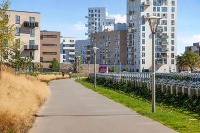 Kun få steder kan du bo så tæt på byen og samtidig med badestrand og bølgebrus i baghaven. Amager Strandpark, der blot er 5 minutters gåtur væk, byder på kilometervis af den fineste badestrand. Her kan du desuden både spille minigolf, beachvolley eller udnytte de fantastiske forhold til kitesurfing. Bevæger du dig langs vandkanten, kommer du til kajakklubben og lystbådehavnen.