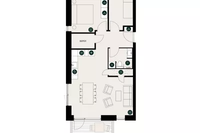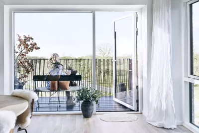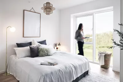 Store vinduespartier fra gulv til loft inviterer naturen med indenfor, og sikrer dig et hjem med masser af dagslys. Derudover er der arbejdet med krydsbelysning i lejlighederne, hvilket vil sige, at lyset strømmer fra den ene side af boligen til den anden.
