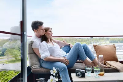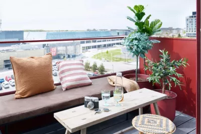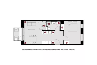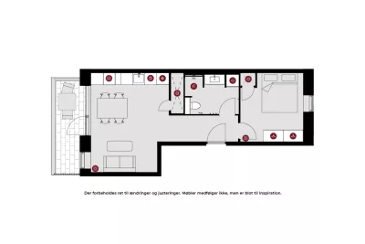 I Rubinhaven flytter du ind i en moderne og lys lejlighed med smukke arkitektoniske detaljer som runde vinduer og en tilbagetrukket, privat altan i rubinrøde toner.