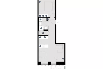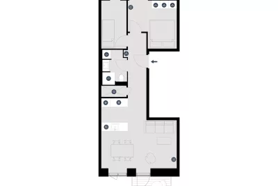 I Strandby Høje er køkken-alrummet lejlighedens naturlige centrum med plads til hverdagen. Det åbne alrum og de store gulv-til-loft vinduer giver lys og luft, hvor der kan leges med en multifunktionel indretning. Her er plads til både madlavning, sofahygge og hjemmearbejde. Fra køkken-alrummet er der desuden direkte udgang til altanen, i nogle lejligheder er der faktisk to, med plads til både grillaftener og urtehave. Køkken-alrummet er malet i lyse, nordiske nuancer med egetræsgulv og hvide køkkenelementer med integrerede hårde hvidevarer.